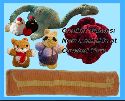 | Requirements: | if you need yarn, or have questions about thickness/hook sizing, its best to come in the day/ morning before, making it easy to jump into class! |